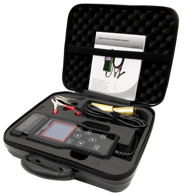 Akumulātoru testeris ar mikroprocesora vadību visu veidu akumulātoriem (100-2000 CCA diapazonā) ar printeri.