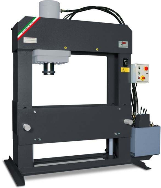 Hidrauliskā darbnīcas prese(izmēri var tikt saskaņoti pie pasūtījuma veikšanas), modelis PFF, ir ideāli piemērota dažādiem procesiem, tostarp lokšņu metāla taisnošanai, gultņu, skrūvju, paplāksņu montāžai un demontāžai vai štancēšanas un materiālu deformācijas darbu veikšanai, un tā ir lieliski piemērota intensīvai lietošanai apkopes un remonta darbnīcās vai pat rūpniecības uzņēmumos. Prese ir aprīkota ar divu ātrumu vadības bloku, ko aktivizē, vienlaikus izmantojot sviru un pogu.