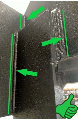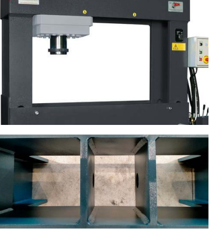 Preses konstrukcija ir izgatavota no ļoti bieza frēzēta tērauda, ​​kas ir pilnībā sametināts pa visu preses perimetru ar pārāk lielām metinājuma šuvēm. Faktiski, lai nodrošinātu, ka prese var absorbēt pat visaugstāko spiedienu un saglabāt savu struktūru nemainīgu gadu gaitā, ir nepieciešams, lai metinājuma šuves tiktu izgatavotas optimālā veidā. Tas mūs atšķir no vairuma konkurentu, kuri, lai ierobežotu ražošanas izmaksas, izgatavo daudz plānākas metinājuma šuves un tikai atsevišķos rāmja punktos.