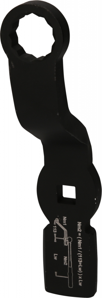 - ar iegravētu griezes momenta pārrēķināšanas formulu pagarinātajai svirai