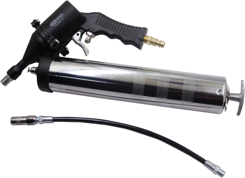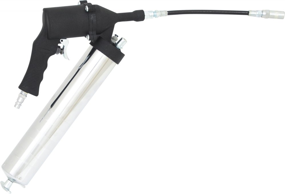 Pneimatiskā smērvielas prese ar elastīgu caurulīti un sprauslu