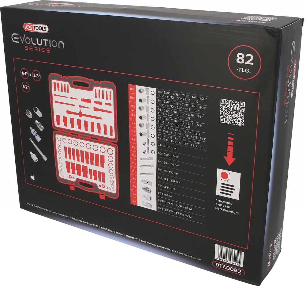 1/4"+3/8’’+1/2’’ galatslēgu komplekts, 82 gab., izmēri collās