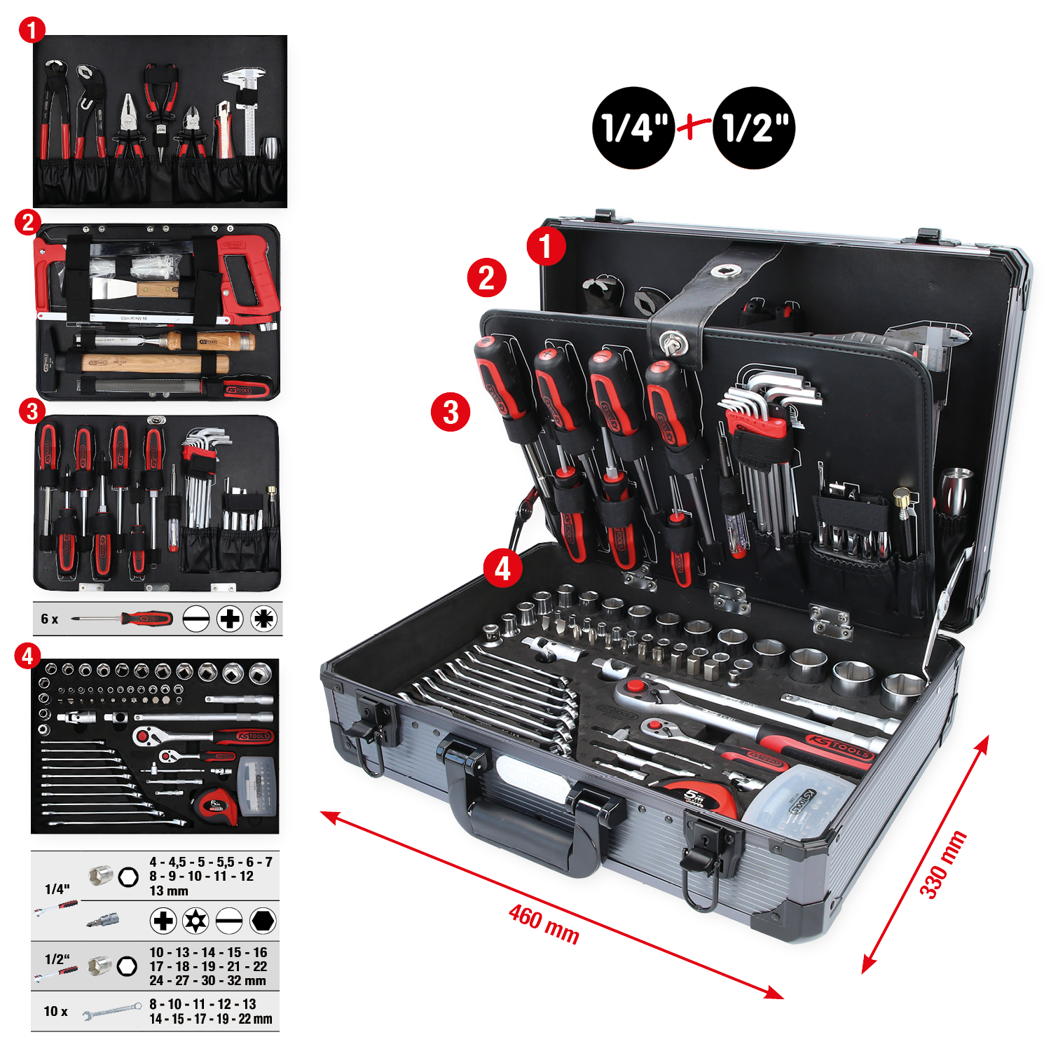 1/4"+1/2" universālais instrumentu komplekts, 149-daļīgs