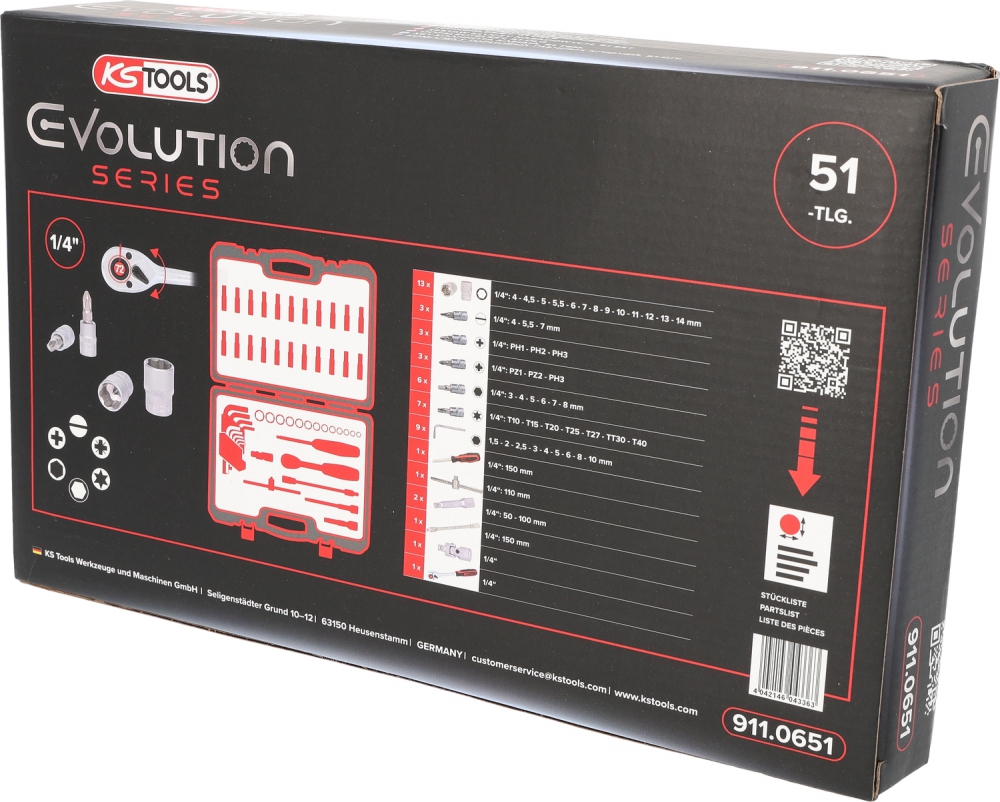 1/4" galatslēgu komplekts, 51-daļīgs