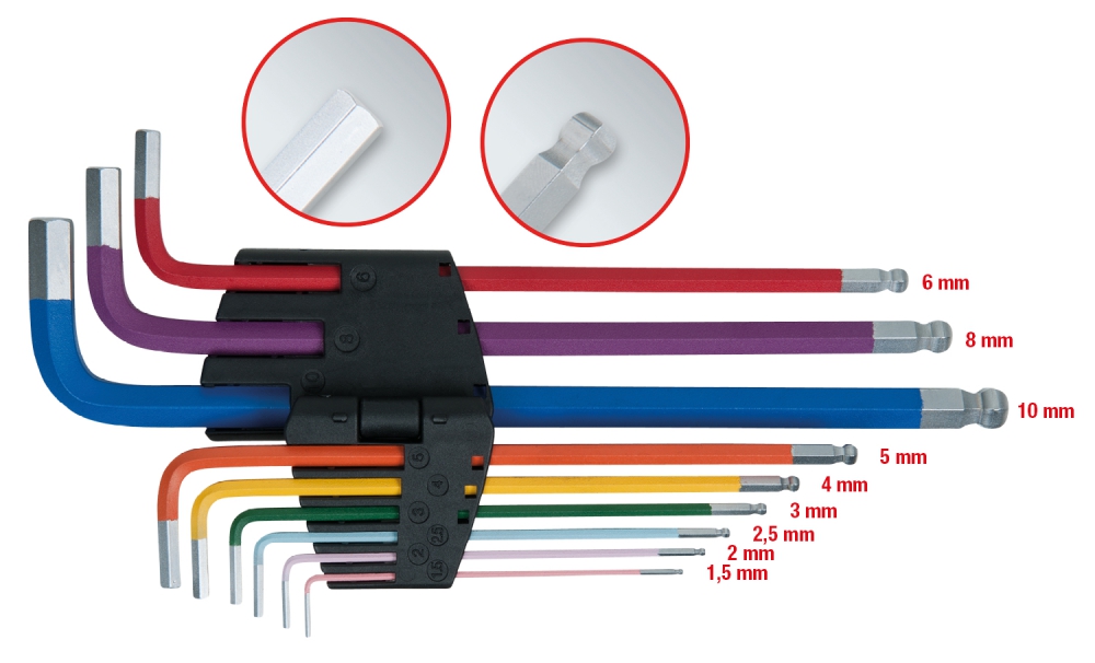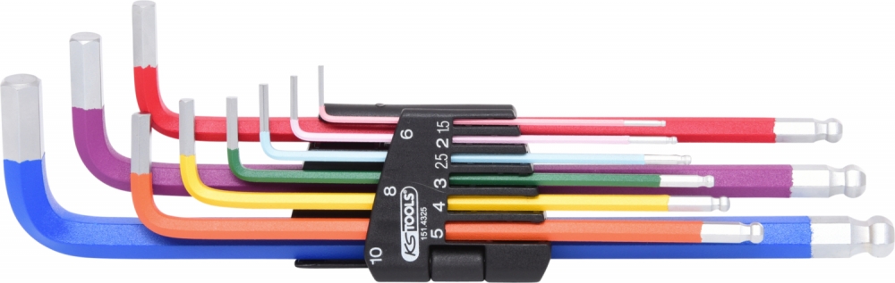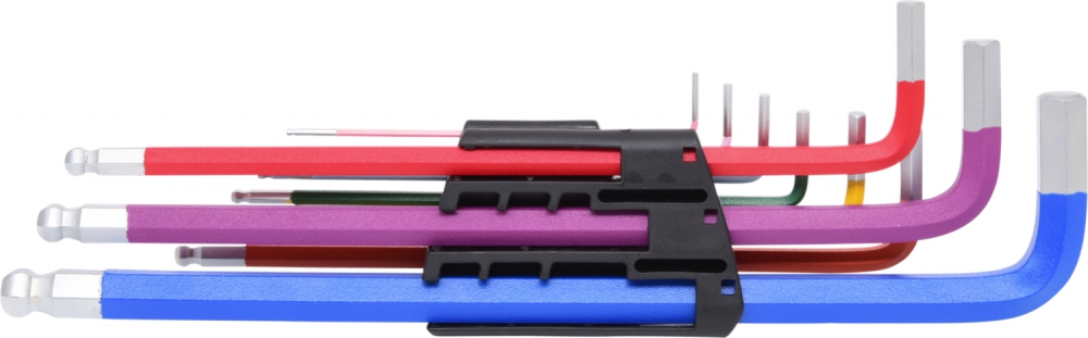 L veida atslēgu komplekts, iekšējais seškantis, ar lodveida galvu, 9-daļīgs