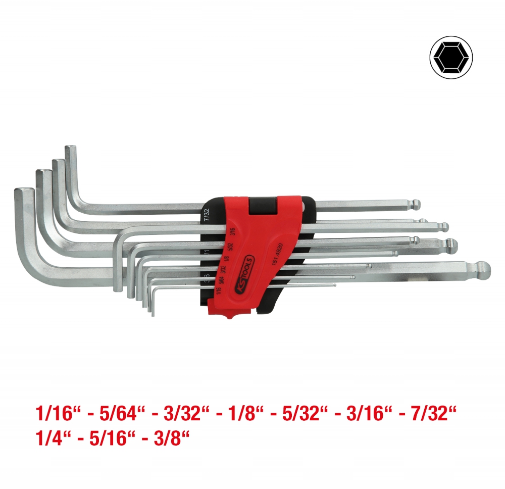 L veida atslēgu ar lodveida galvu komplekts, iekšējais seškantis, XL, 10-daļīgs, collas