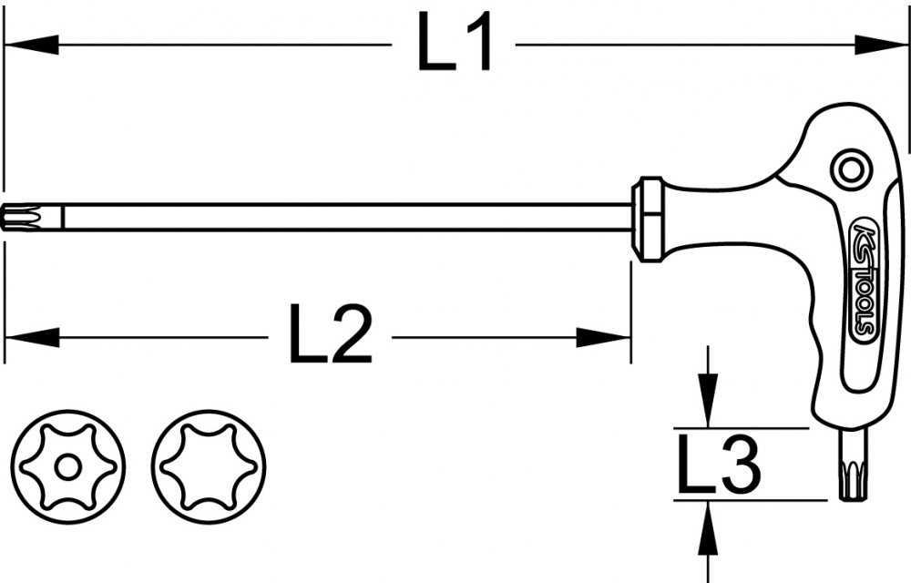 Torx L veida atslēga ar T veida rokturi, ar urbumu, TB10