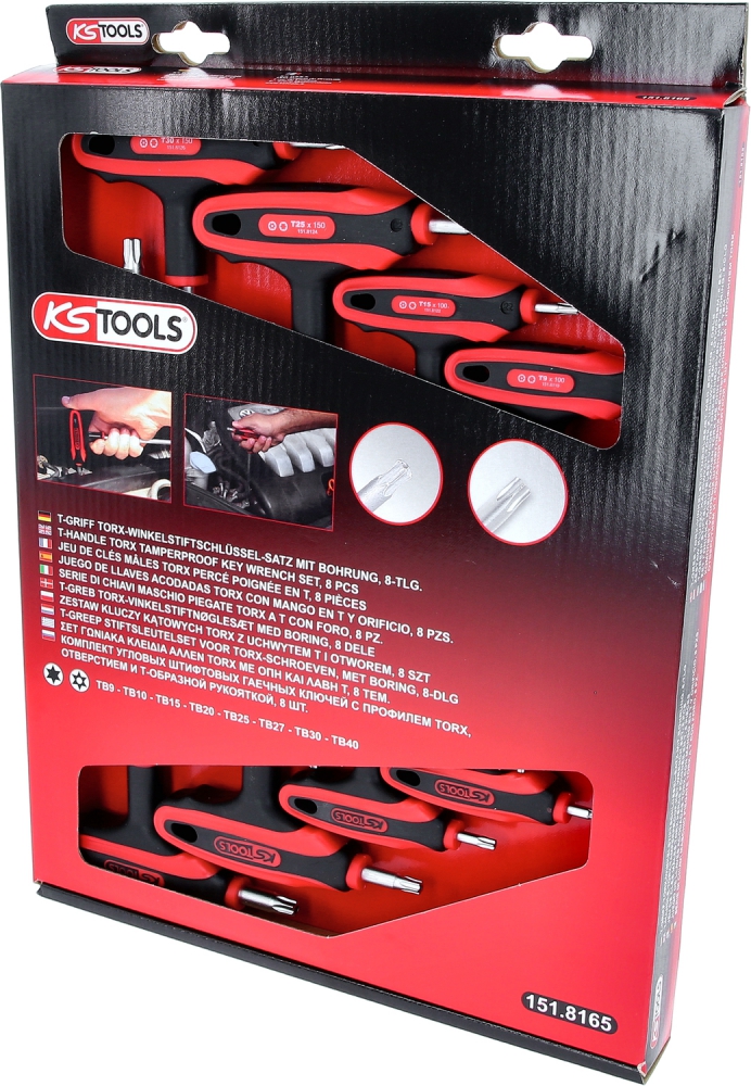 Torx L veida atslēgu ar T veida rokturi komplekts, 8-daļīgs, ar urbumu