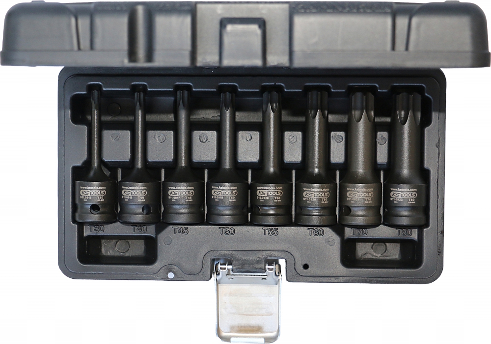 1/2" triecienmuciņu ar uzgali komplekts, Torx, 8-daļīgs, T30-T80, garas