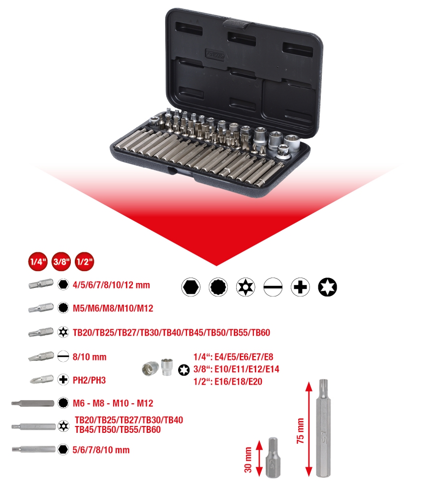 1/4"+3/8"+1/2" Torx galatslēgu un uzgaļu komplekts, 57-daļīgs