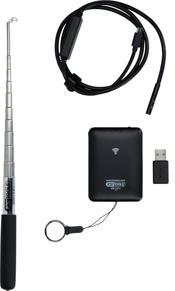 Wi-Fi videoskopa komplekts ar Ø 6,0 mm un 90° HD priekšējās kameras zonde, pārslēdzama, 4-daļīga