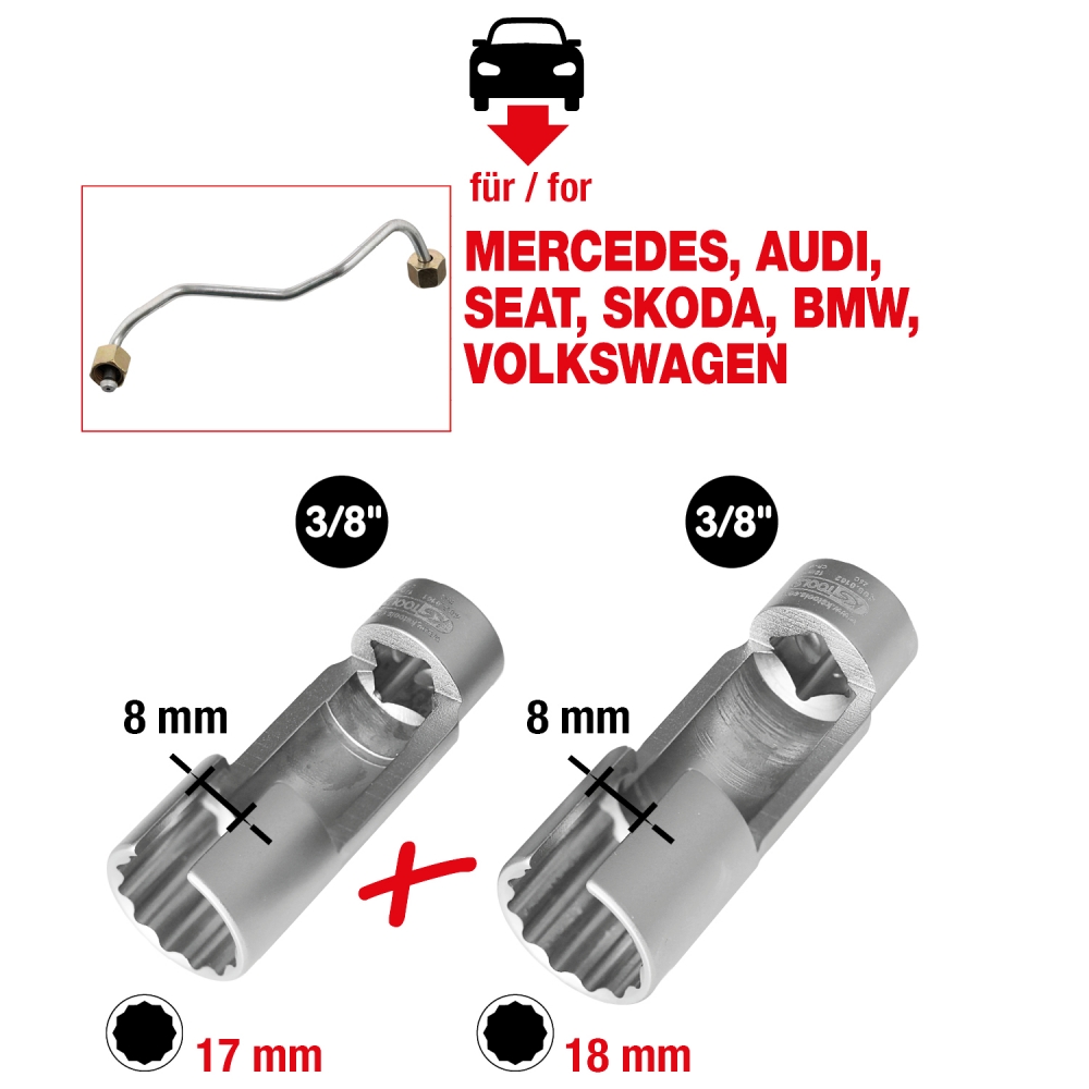 3/8" iesmidzināšanas vada atslēgu komplekts, 2 instr.