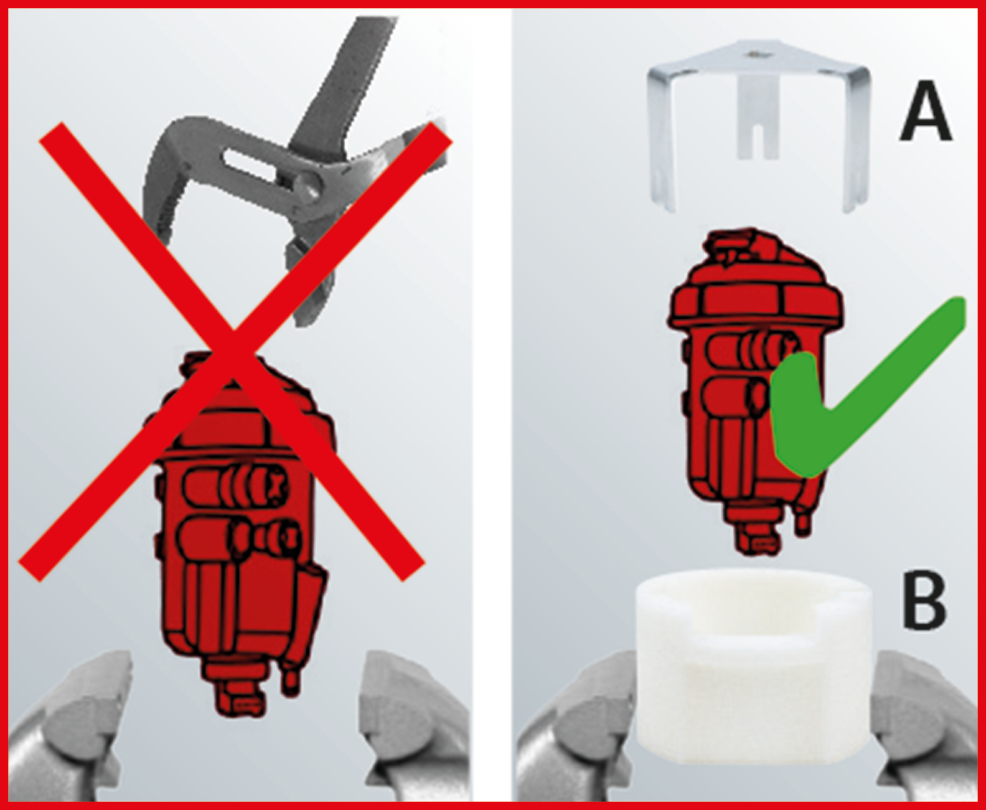 - pasargā no degvielas filtra korpusa un stiprinājuma gredzena bojājumiem