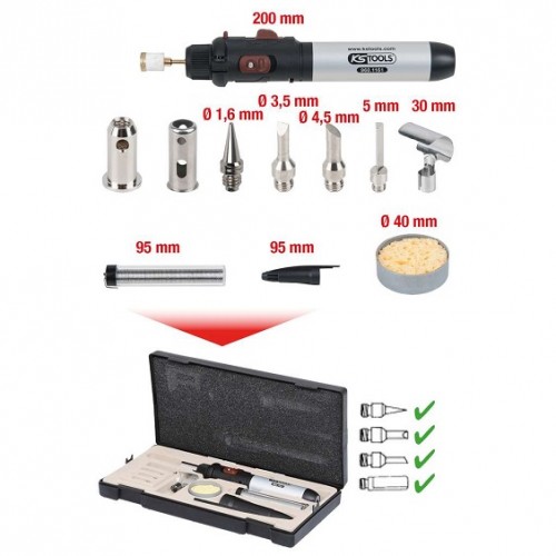 - ar gāzi darbināma mikro lodēšanas ierīce līdz 1300°C