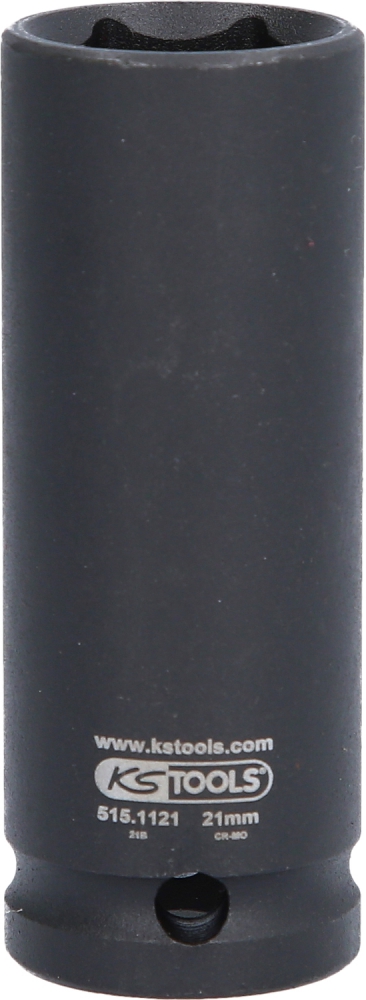 1/2" 6-kanšu triecienmuciņa, gara, 21mm
