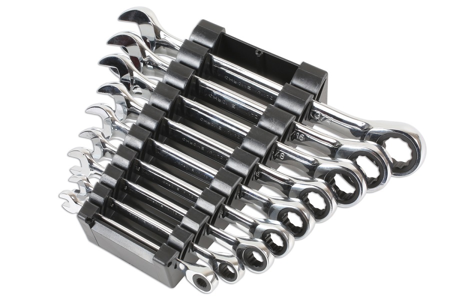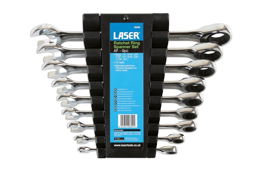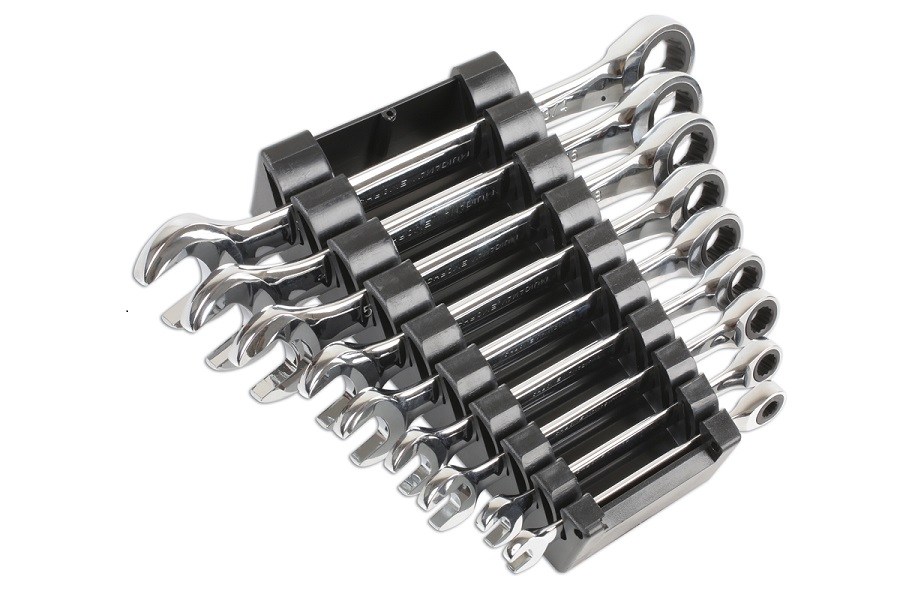 9 gabalu collīgo (AF) kombinēto atslēgu komplekts ar sprūdrata gredzenu, paredzēts profesionālai lietošanai. Atslēgām ir 72 zobu sprūdrata mehānisms, kas nodrošina mazu darba leņķi un ērtu darbu ierobežotās vietās.