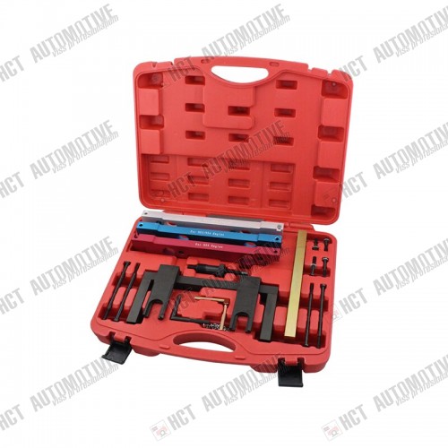 Komplektā ietilpst sadales vārpstas bloķēšanas rīks, VANOS izlīmeņošanas plāksne, spararata bloķēšanas tapa. Piemērots BMW 2,5 / 3,0 litru ķēdes piedziņas sešu cilindru, divu sadales vārpstu 16V benzīna motoriem.