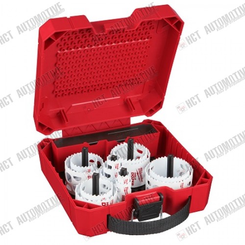 13 x cilindriskie zāģi: ⌀ 20, 22, 25, 32, 40, 44, 51, 57, 64, 65, 67, 68, 76 mm. Vārpsta ⌀ 14-30 mm cilindriskajiem zāģiem. Vārpsta ⌀ 32-152 mm cilindriskajiem zāģiem. 2 x piloturbju asmeņi. ⅛″ sešskaldņu atslēga