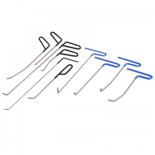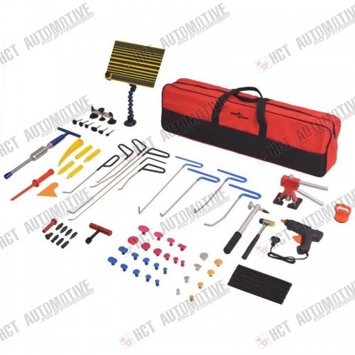 Automobīļu virsbūvju baulēšanas instrumentu komplekts ļaus izlīdzināt jūsu mašīnas virsbūves buktes un iespiedumus, nesabojājot krāsojumu. Lietojot instrumentu komplektu, jūsu automašīnas virsbūve netiks sabojāta, kā tas būtu ar citām metodēm. Buktes tiek izlīdzinātas no paneļa otras puses, tāpēc jūsu automašīnu nevajadzēs pulēt, lietot krāsas pildvielas (špakteles) vai pārkrāsot. Jums nebūs jāmaina vai jāpārkrāso paneļi, tādējādi jums nebūs jāsatraucas par nepeiciešamās krāsas sajaukšanu. Bukšu izlīdzināšanas metode ir ļoti maigs process, kam nepieciešami vislabākie instrumenti, tādēļ šis komplekts būs lieliska izvēle jūsu automašīnas virsbūves bukšu izlīdzināšanai. Šajā komplektā ietilpst 10 iespiedumu labošanas stieņi, 1 bukšu pacēlājs, 1 liels T-veida slīdošais āmurs, 1 līmes pistole, 1 atstarotājs ar kustīgu turētāju, 10 līmes stienīši, 1 mini T-veida rokturis, 1 pievilkšanas tiltiņš ar 7 dažādiem uzgaļiem, 1 gumijots baulēšanas āmurs, 1 baulēšanas āmurs, 1 baulēšanas instruments ar 8 dažādiem uzgaļiem, 28 līmes kapsulas, 1 plastmasas kalts, 1 plastmasas skrāpis, 5 baulēšanas instrumenti un 1 mini piesūceknis. Vieglai uzglabāšanai un transportēšanai šis komplekts tiek piegādāts ar uzglabāšanas somu.