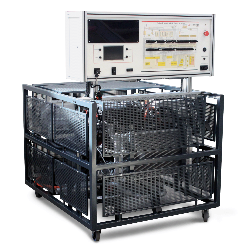 Fully operational hybrid electric system with petrol internal combustion engine mounted in a mobile frame. The hybrid system is designed to demonstrate the internal combustion engine, electric motor, gearbox and structure of the rechargeable energy storage system. The educational training engine is based on Toyota original (refurbished) engine.