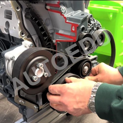 • Practice auxiliary belt removal, tensioner release, pulley, alternator, cooling pump, and AC compressor service.