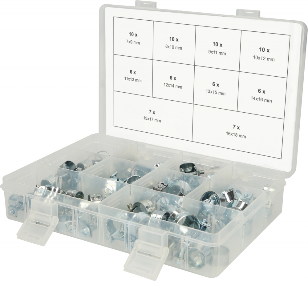 Assortment mini hose clamps, Ø 7-18mm, 78 pcs