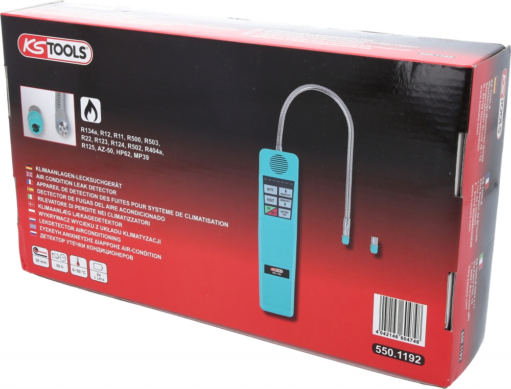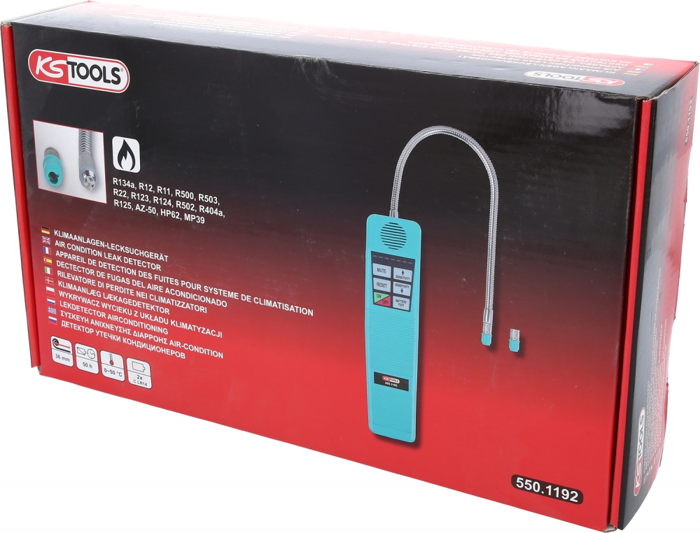 • reacts to R134a, R12, R11, R500, R503, R22, R123, R124, R502, R404a, R125, AZ-50, HP62 and MP39