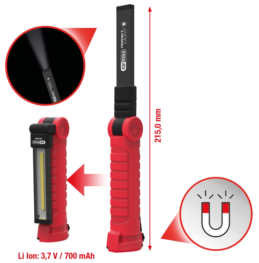 - inspection light, working light and flashlight in one