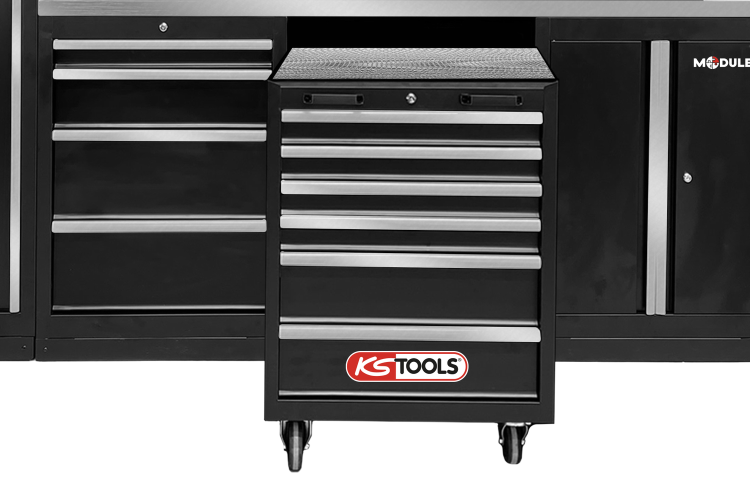 • Integrated workshop trolley with 6 drawers (4x 75 mm, 2x 150 mm)