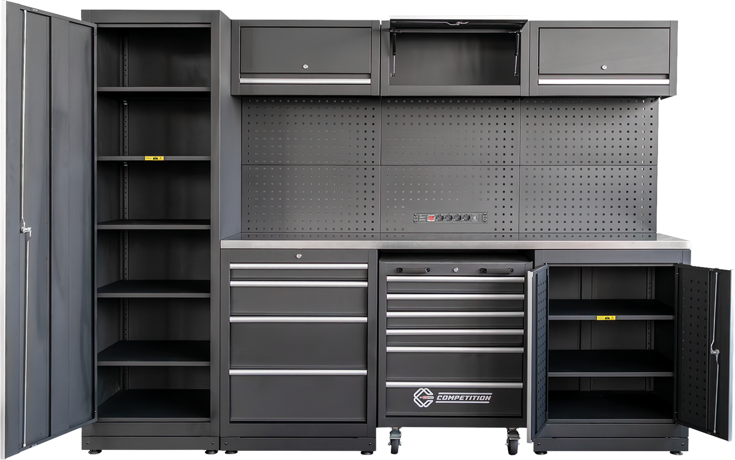 • Including three magnetic, corded, under-cabinet LED lights for optimum illumination of the work area