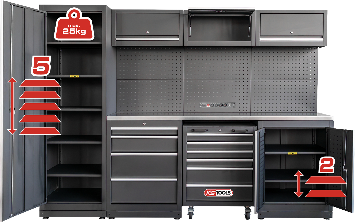 • XXL cabinet with 5 insert panels (1x fixed + 4x variable)