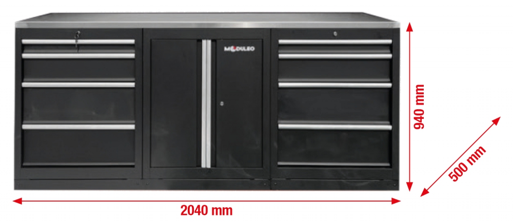Workshop cabinet system expansion module, stainless steel worktop, work bench