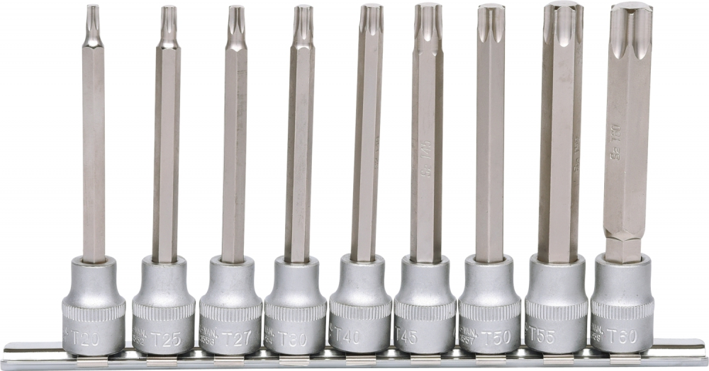 3/8" Bit socket set Torx, long, 9 pcs, T20-T60