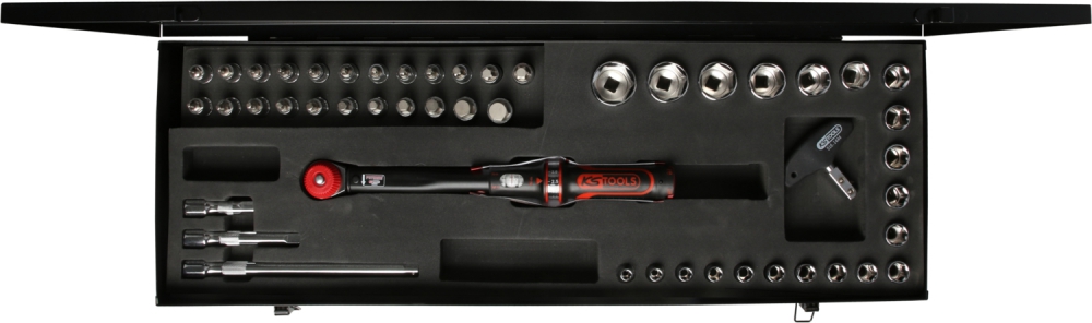 1/2" ERGOTORQUE®precision torque wrench toolkit with rotary mushroom ratchet head, 20-100Nm, 49 pcs