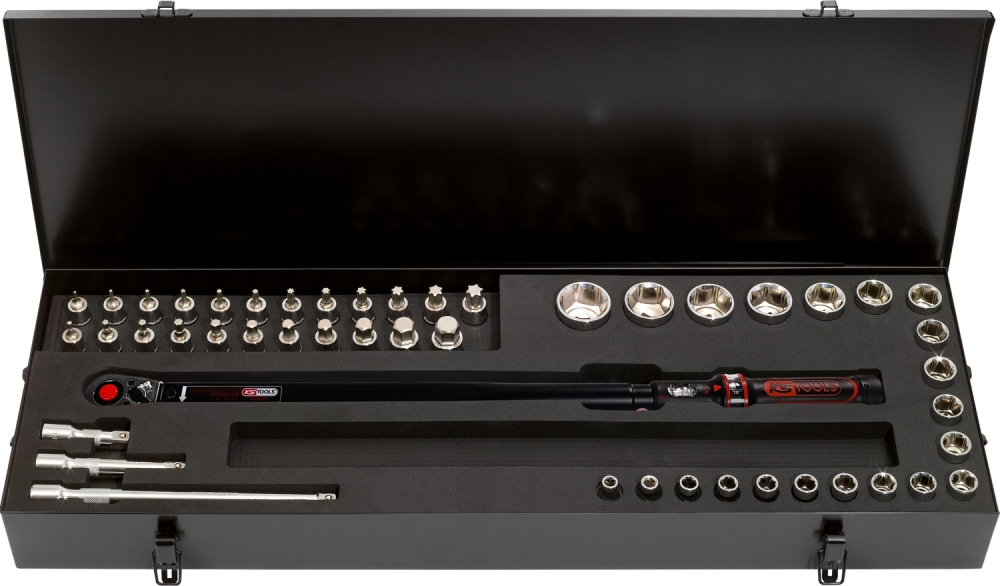 1/2" ERGOTORQUE®precision torque wrench set with reversible ratchet head, 80-420Nm, 48 pcs