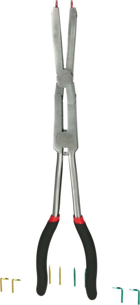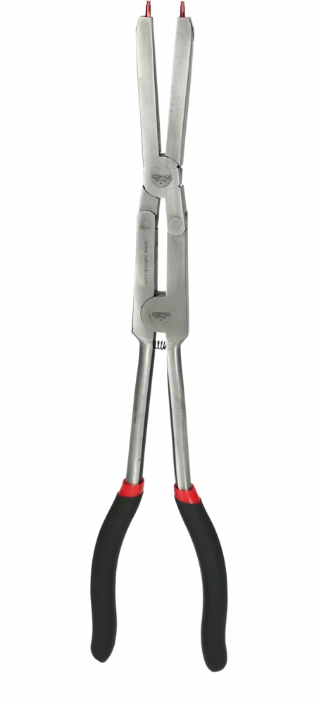 Double joint securing pliers for external retaining rings with replaceable tops
