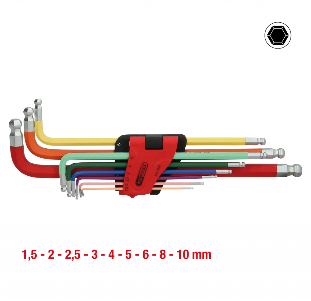 Double ball ended hexagon key wrench set, extremely long, 9 pcs