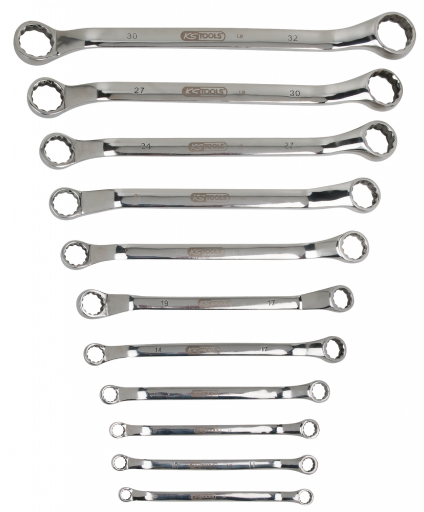 STAINLESS STEEL Ring spanner offset set, 11 pcs