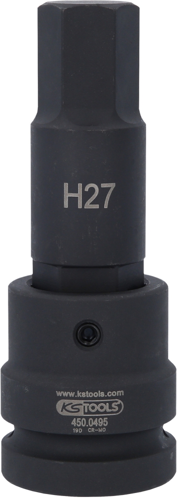 1" Impact bit socket, hexagon, long, 27mm