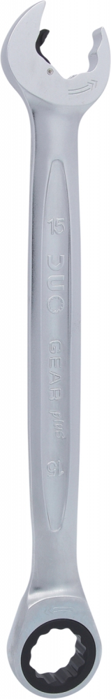 DUO GEARplus combination spanner set with ratchet mechanism in ring and open jaw 15mm