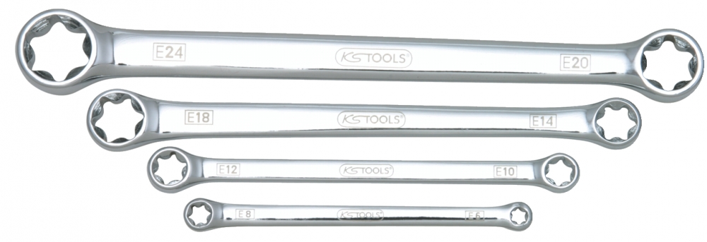 CHROMEplus Double ring spanner set for Torx E-Profile, 4 pcs