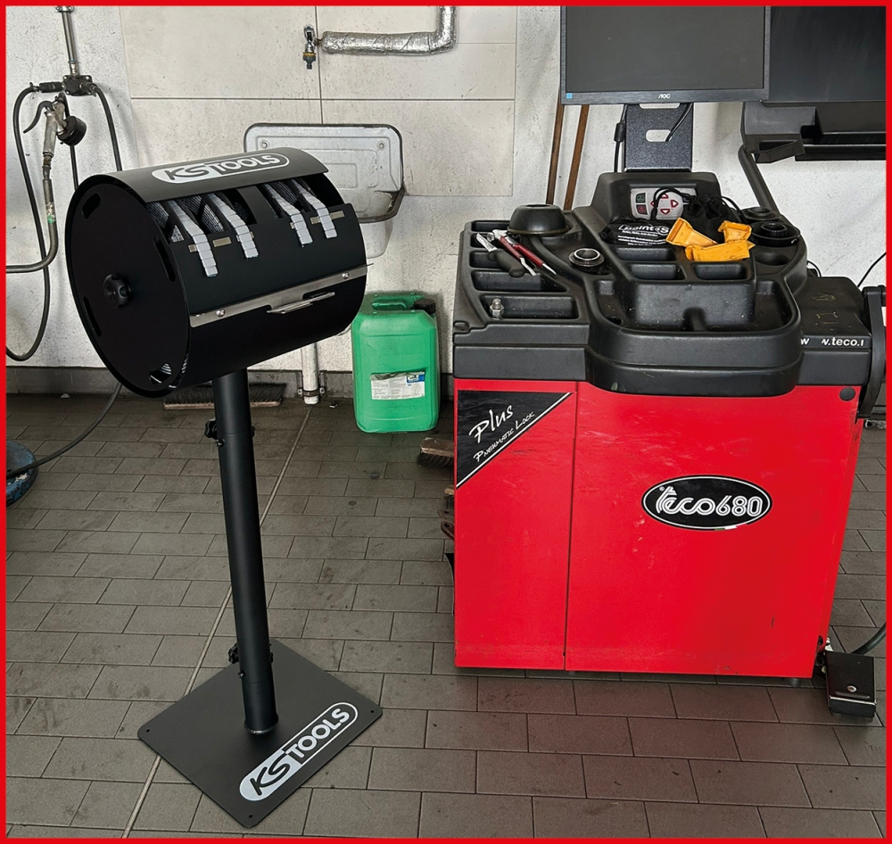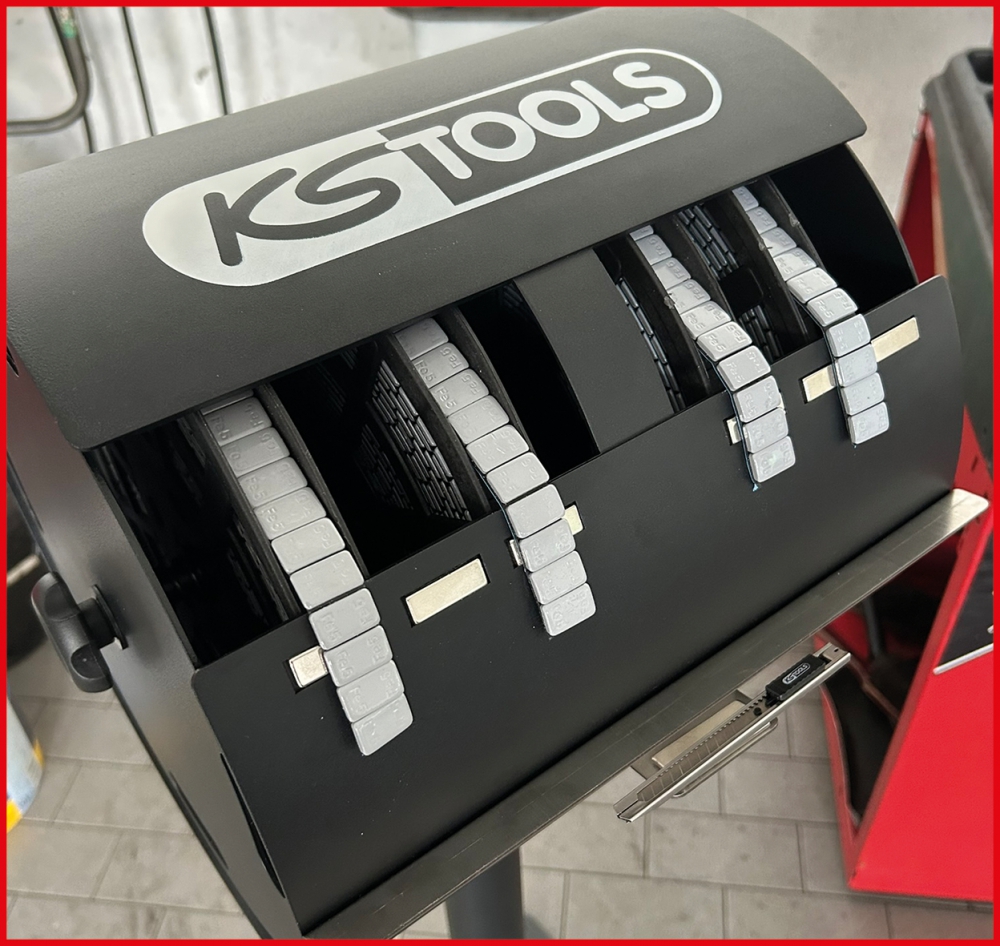 - with springs, knurled nuts and spacer discs for fastening the adhesive weight rolls