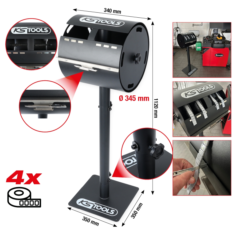 - the holder can accommodate up to 4 adhesive weight rolls