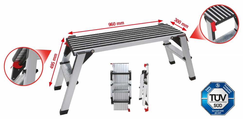 • can be used to assemble screens, engine bay work, work on the roof, commercial vehicle pit work etc.