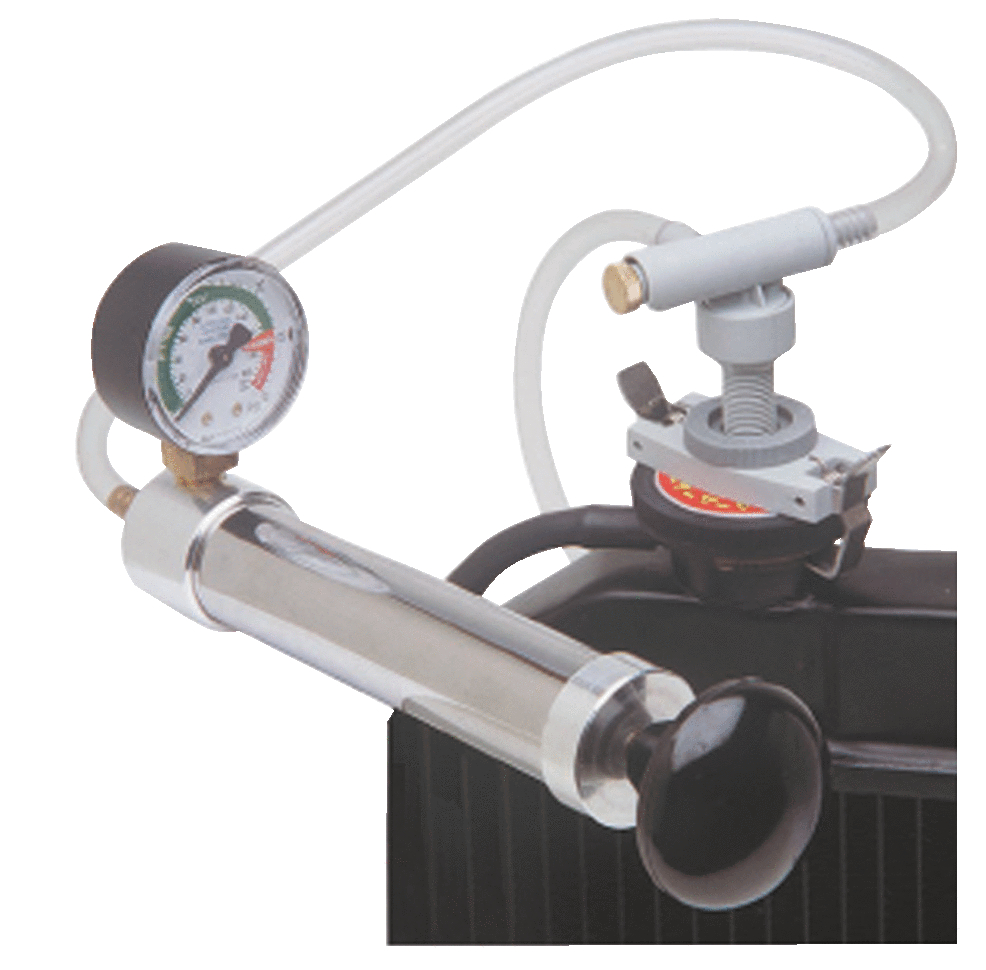 - innovative and universal diagnosis device for testing the pressure in the cooling system as well as the pressure caps