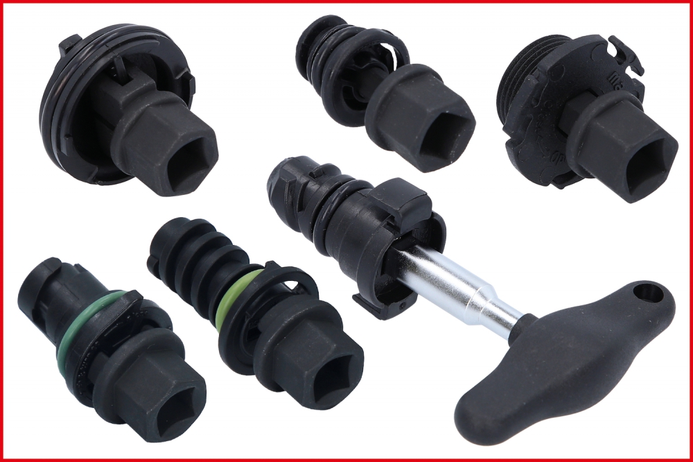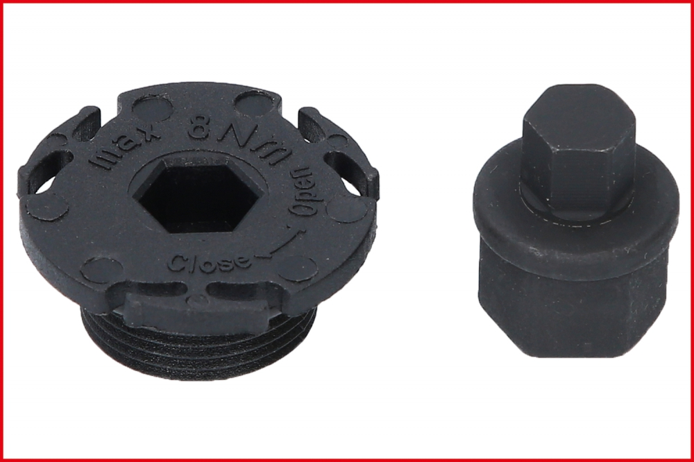 - special bit sockets for assembly and disassembly of plastic oil drain screw on plastic oil sumps