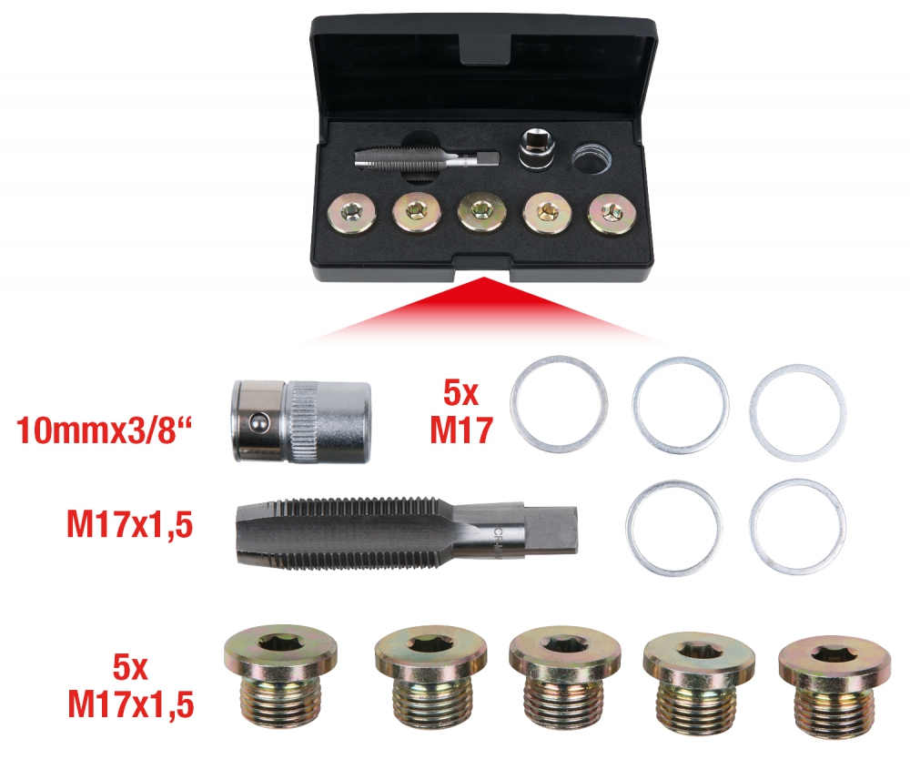 Oil sump drain plug repair kit, 12 pcs M17 x 1,5