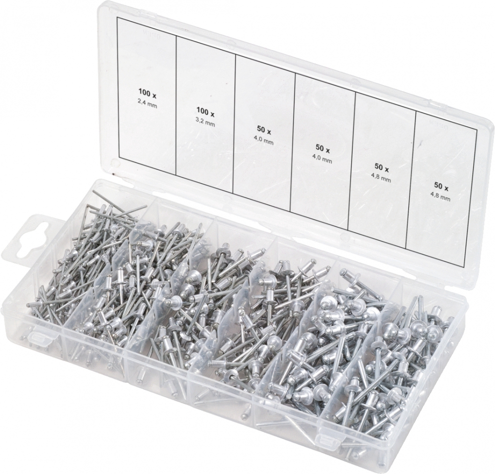 Blind rivets assortment, 2.4-3.2-4-4.8, 400 pcs