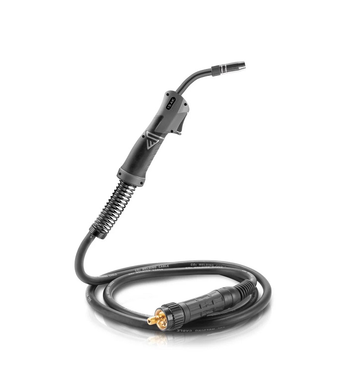 MIG and MAG welding torches from STAHLWERK are robustly designed and perfectly matched to STAHLWERK welding equipment and that of other manufacturers. The torch is connected with a hose package via a Eurocentral connection. Basically, an AK15/MB15 welding torch is intended for wire thicknesses from 0.6 to 1.0 mm. With a duty cycle (ED) of 60%, the maximum load is 180 amps with CO2 or 150 amps with argon or CO2 mixed gas. The AK15/MB15 MIG MAG welding torch fits comfortably in the hand and allows welding for longer periods with less fatigue. It is light and flexible in its use. The torch has a 5 m long gas-cooled hose. Its gas cooling function protects the entire hose package from overheating. Our hose package fits STAHLWERK brand welding equipment with Eurocentral connection up to 200 A output power.
