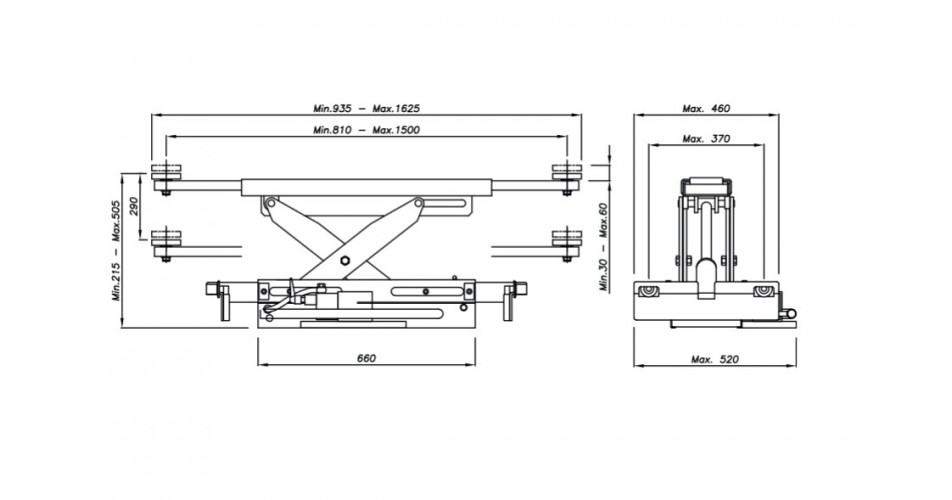 Hidrauliskais domkrats paredzēts uzstādīšanai uz remonta bedres malām vai uz 4-statņu auto pacēlāja starp platformām. Darbināms manuāli ar rokas sūkni.